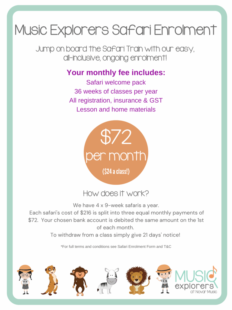 A minimum of 3 weeks’ notice is required to cancel enrolment for the next term of classes. Term fees are non-refundable. Changes to enrolment can be made by emailing enquiries@novarmusic.com.